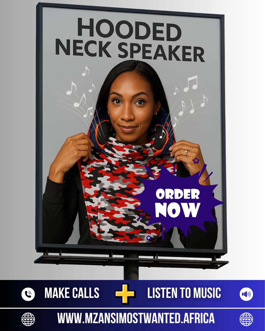 Wireless Wearable Neckband Speaker that can be used together with the Tech Hoodie, simply insert the speaker in the pockets around the neck of the Tech Hoodie. Use it for activities like gaming, doing housework, outdoor sports or even a video conference.